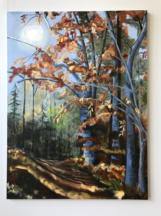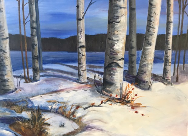 Landscapes “Dundas Valley Meadows” 60 x 36 acrylic “Olga’s Pine” 24 x 48 acrylic “Escarpment Cottonwoods” 30 x 15 acrylic “Clappison Quarry” 20 x 16 acrylic “Forest Light” 36 x 36 acrylic “Patchwok Fields” 12 x 16 acrylic “Winter Wander” 11 x 14 acrylic “Across the Ravine” 30 x 40 arcylic “Winter Solstice” 14 x 11 oil “McCormick Trail” 16 x 16 o/c “Fly Away” 9.5 x 22 water colour “Red Barn – Summer” 11 x 14 acrylic “Solitude” 8 x 10 acrylic “Path to the Lake” 8 x 10 oil “High Level Bridge” 11 x 14 pastel “Princess Point Springtime” 11 x 12 acrylic “Outerbridge Farm” 16 x 20 acrylic “Sunflower Field” 24 x 30 acrylic “March Light” 30 x 40 acrylic “Chedoke” 9 x 11 acrylic “Christie Conservation Area” 11 x 15 water colour “Behind Dundurn Castle” 11 x 16 o/c “Bronwen’s Porch” 11 x 15 water colour “Big Sky” 18 x 24 acrylic “Rolling Hills Vineyard” 24 x 20 o/c “Cootes Paradise” 24 x12 o/c “Old Barn” 18 x 14 acrylic “Tall Aspens” 18 x 48 acrylic “David’s Birch Trees” 36 x 60 acrylic “Birch Trees 2” 24 x 36 acrylic “Autumn Breeze” 12 x 12 acrylic “Sherman Falls 1” 11 x 14 o/c “Yellow Canoe” 14 x 11 o/c “Dusk over the Harbour” 10 x 12 pastel “Lake Nippising Island” 11 x 16 o/c “Dragonfly Canoe” 18 x 24 acrylic “Let’s Do Lunch” 20 x 10 acrylic “Pine at the End of the Bridge” 10 x 20 acrylic “Secret Garden” 11 x 14 acrylic “Haliburton” 14 x 10 water colour “Lake Nipissing March” 24 x 18 acrylic “Autumn Pasture – Cows” 14 x 11 acrylic “Slote Road November” 30 x 24 arcylic “View from Morden’s Farm” 20 x 16 acrylic “Birch Trees 3” 40 x 30 acrylic “Lavender Fields” 14 x 11 o/c “Slote Road March” 24 x 18 acrylic “Round Bale Harvest” 12 x 12 oil “Golden Maple” 8 x 10 oil “Frozen March” 24 x 18 oil “Tall Pine” 16 x 40 acrylic “Beech Trees in Autumn” 35 x 35 acrylic “Sulphur Springs Road” 24 x 18 acrylic “Red Barn in March” 14 x 11 acrylic “Lighthouse” 12 x 12 acrylic “Forest Path in Winter” 12 x 12 acrylic “Winter Birches” 24 x 18 acrylic